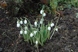 Many snowdrops are already in flower despite the bitter weather last week. Mrs Macnamara was flowering before Christmas and is nearly over now but we can see many more now that we have cleared away most of last year’s dead foliage