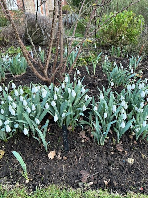 Masses of our snowdrops are flowering and looking so wonderful. it is always a great relief to see our old friends re-appearing and even more so when last year’s expensive purchases emerge from winter’s cold grip.I had forgotten how stunning Ivington Green is and i am pleased that the considerable price (I forget exactly how much it cost) was justified. Very large flowers with strong markings on the outer segments make it stand out in the garden which is what i like.