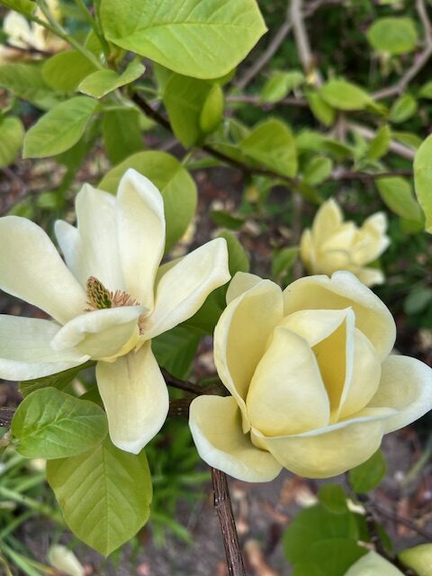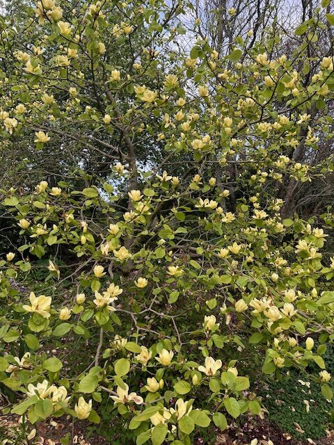 Although it is still cold at night and we are suffering from a persistent north/east wind the garden is starting to bloom and everything seems to be a week or so earlier than last year. Our magnolia Heaven Scent was certainly flowering two weeks early and thank goodness avoided being frosted so we were able to enjoy its sumptuous flowers. It has been a wonderful year for magnolias, perhaps due to the very wet winter. The beautiful ‘Lois’ has been flowering in spectacular fashion for three weeks now, her flowers are a particularly delightful buttery yellow and appear before the leaves so stand out in all their pristine beauty.
